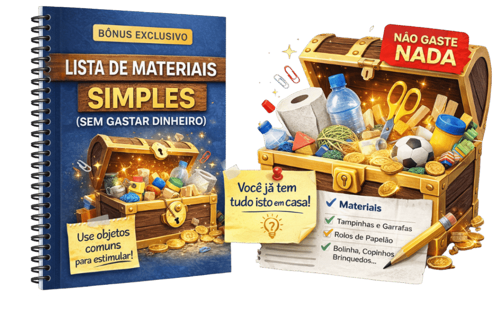Você vai descobrir como transformar itens comuns, como garrafas, bolas, cadeiras e até brinquedos básicos, em ferramentas reais de estimulação, sem precisar gastar dinheiro com materiais caros ou específicos.
