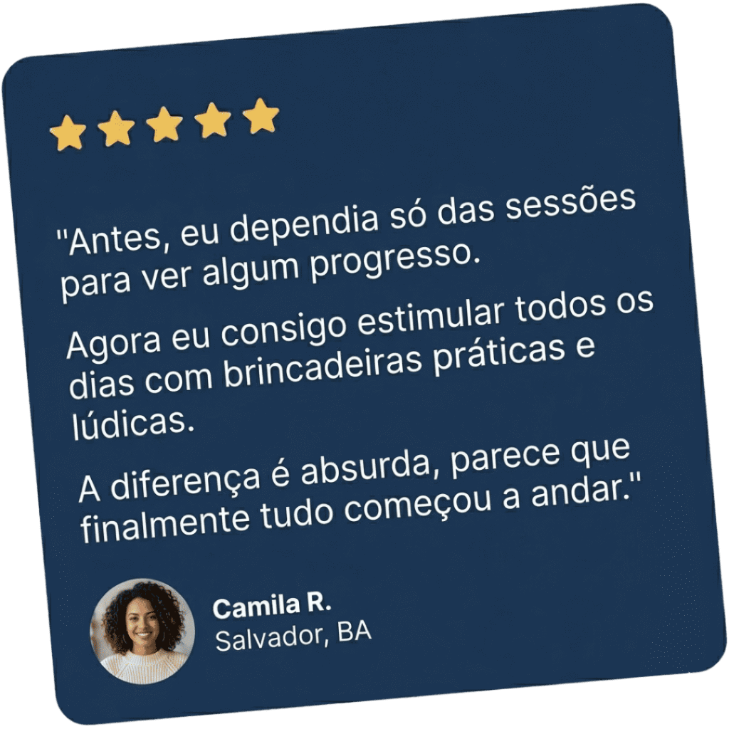 Com uma visão focada na simplicidade e na aplicação real, criei um método acessível que ajuda pais, professores e cuidadores a estimularem habilidades essenciais da criança de forma leve, estruturada e eficaz.